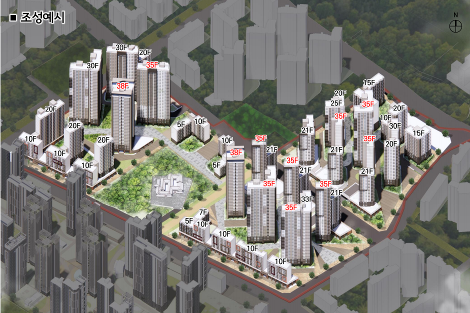 바로 옆 장위9구역도 마찬가지로 상당한 신축 규모를 자랑한다. 성북구 장위동 238-83번지 일대에 위치한 구역면적 약 8만4,248㎡에 공공재개발로 최고 38층 높이의 아파트 2,230세대 등이 들어선다.