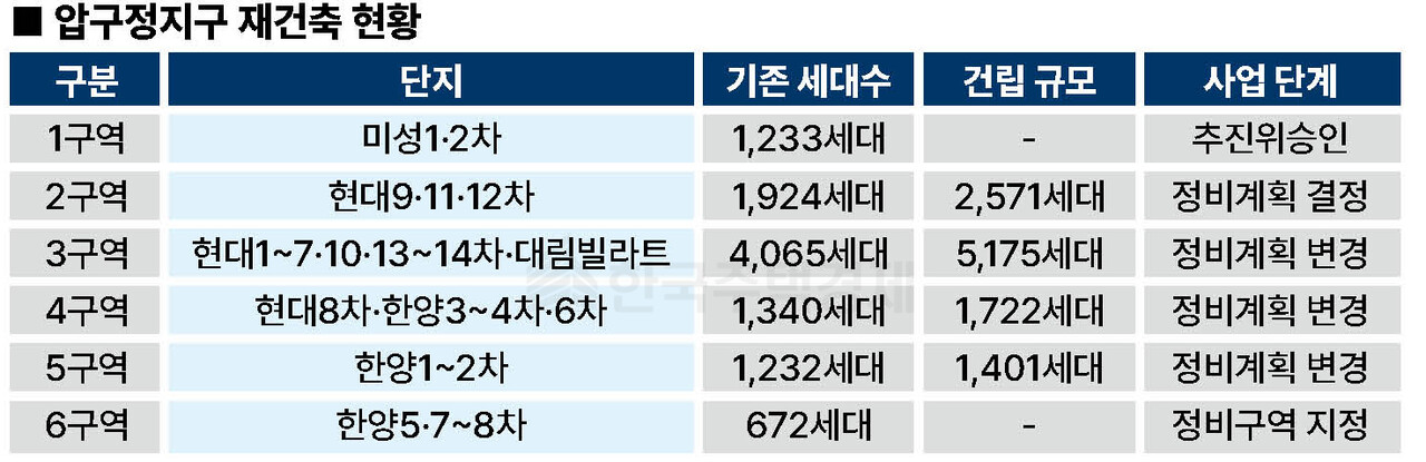 - [건설사 이목 쏠린 압구정지구] 25개 단지, 6개 구역으로 나뉘어 재건축