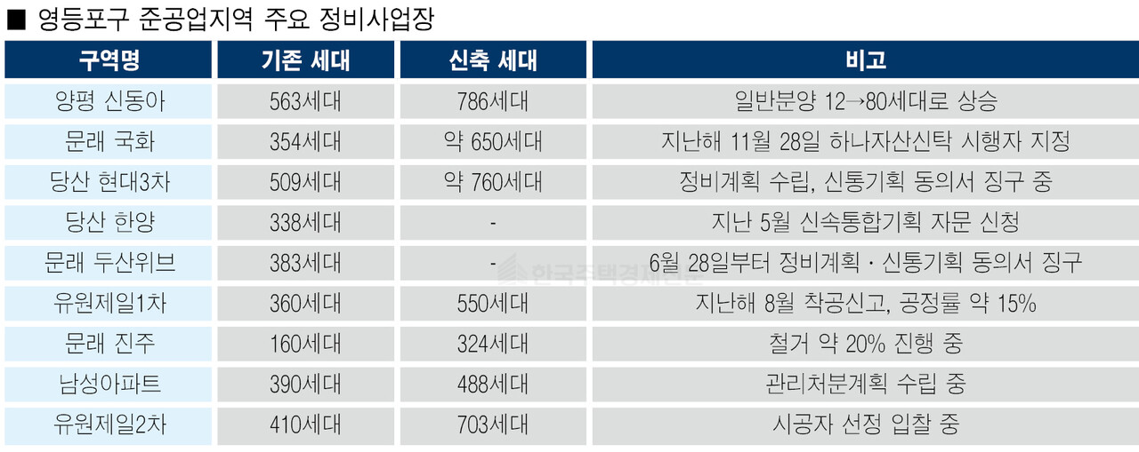영등포구는 서울 준공업지역의 1/4 이상이 밀집해있는 최대 수혜지다. 구가 분류한 정비사업장은 재건축 34곳, 재개발 13곳이다.